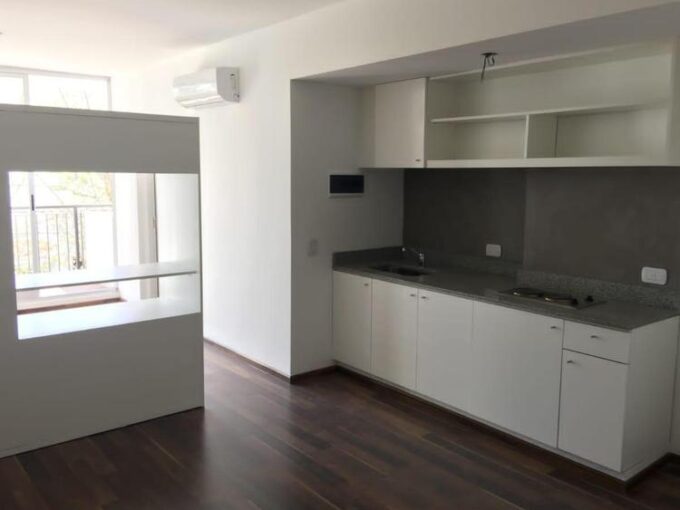 Departamento del tipo monoambiente segundo piso contrafrente por ascensor 28 m2 cubiertos 36 m2 totales , cocina integrada al living con alacenas y mobiliario moderno , cuenta con placard espejado y baño completo . balcón semi aterrazado , cerámicos en todos los ambientes , aire frio calor por Split . solo dos unidades por planta .